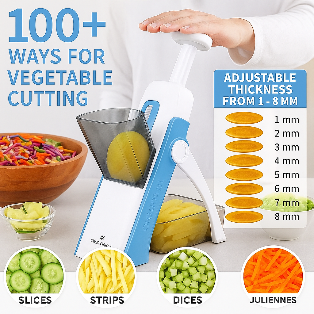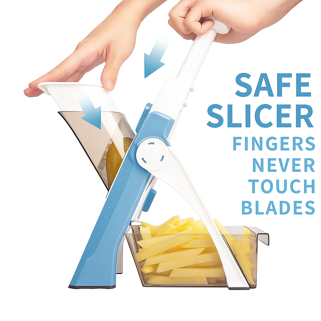 • SAFER SLICER: Safety mandolin slicer for any cook. Sharp hidden blade Slicing is fast, uniform, and easy to set up and clean up, and does not need to glove up or change the blade to use it, This is definitely an upgrade replacement your cooking daily.